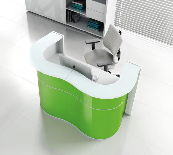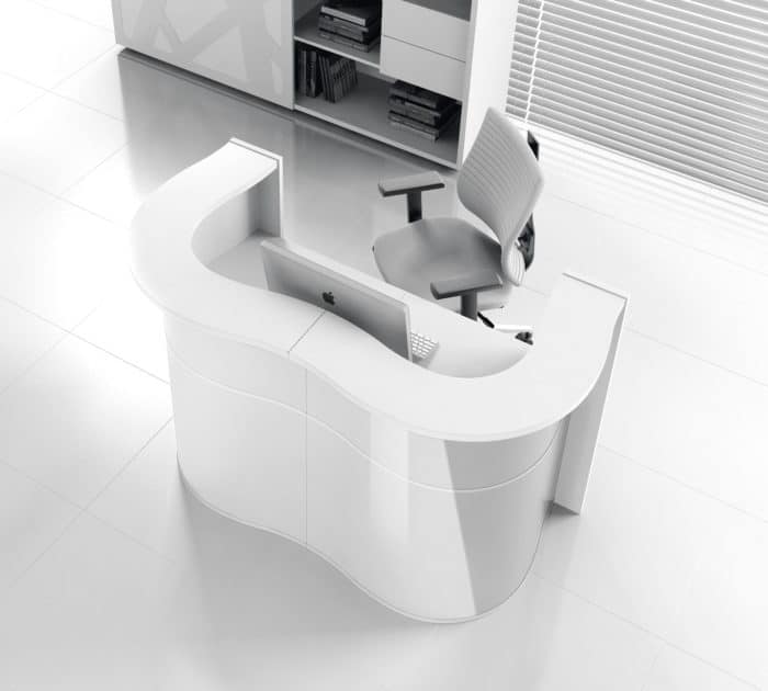 Falista linia odzwierciedlająca siłę i spokój uśpionego oceanu – lada recepcyjna Wave wyróżnia się designem. Luksusowy, a jednocześnie profesjonalny charakter mebla podkreśla biały połysk blatu, połyskujące fronty oraz dekoracyjna aluminiowa listwa. Modułowa konstrukcja pozwala na tworzenie własnych konfiguracji. Lada recepcyjna o kształcie przypominającym ślimaka oszczędza przestrzeń, zapewniając jednocześnie funkcjonalność. Wersja rozbudowana może pomieścić kilka stanowisk pracy, a wykorzystanie niskiego modułu z wysuniętym blatem stanowi udogodnienie dla osób niepełnosprawnych. Charakterystyczna forma przykuwa uwagę, nie przytłaczając wnętrza.