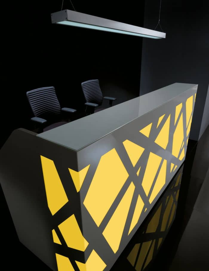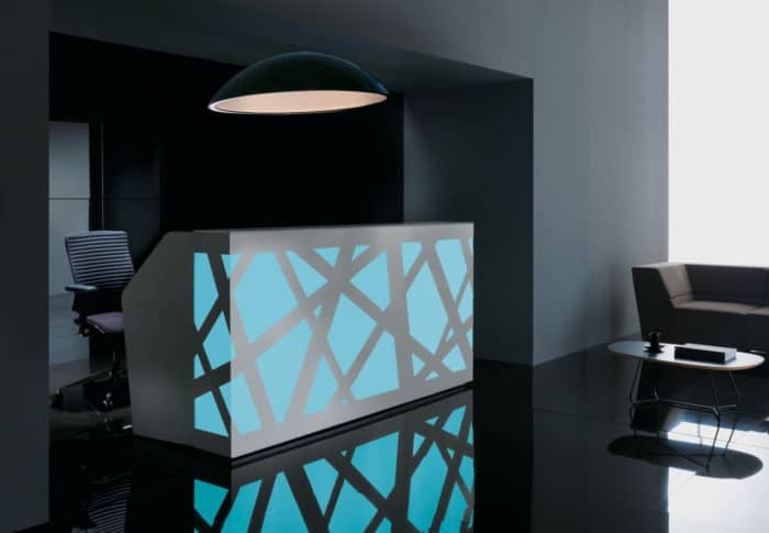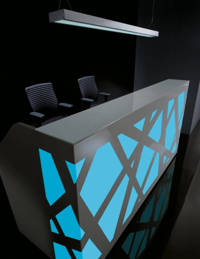 Nowoczesny minimalizm połączony z technologią – lada recepcyjna Zig-Zag oryginalnym wzornictwem udowadnia, że liczy się efekt. Podświetlana ledowo łączy w sobie metal i szkło, eksponując tym samym prestiż i technologiczne zorientowanie firmy. Charakterystyczny wzór na froncie będzie ozdobą każdego wnętrza. Dzięki segmentowej konstrukcji oraz możliwości modyfikacji natężenia i koloru podświetlenia, możliwości aranżacyjne są w zasadzie nieograniczone. Duża lada recepcyjna wyposaży nawet obszerne lobby. Ważnym atutem lady jest dostosowanie funkcjonalności do potrzeb osób niepełnosprawnych. Nowoczesny charakter jest podstawą unikalnego i innowacyjnego wyglądu każdej recepcji.