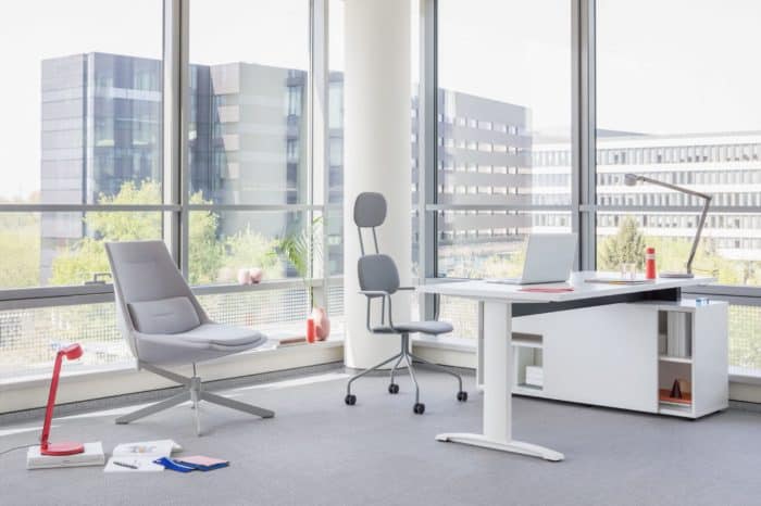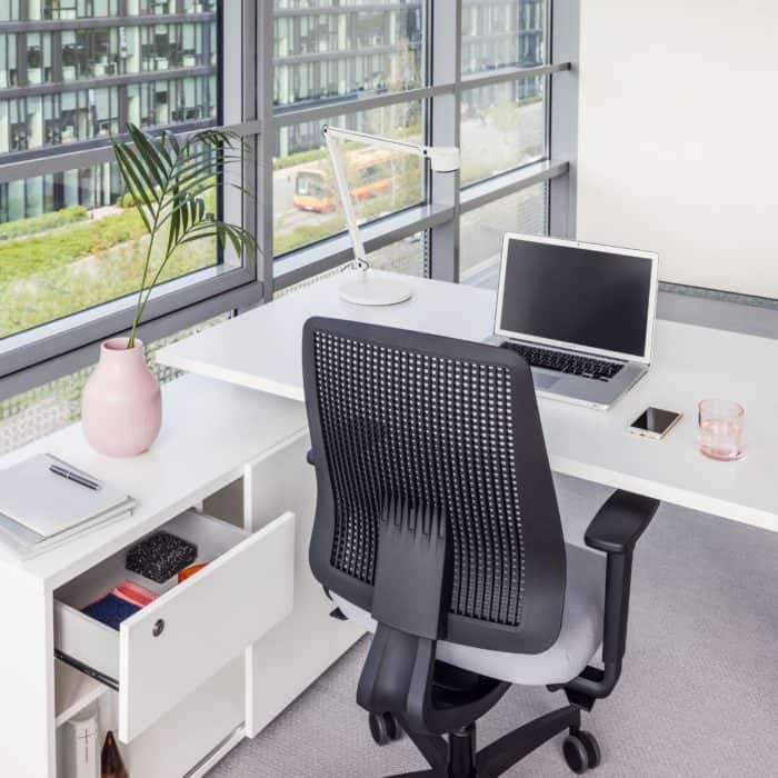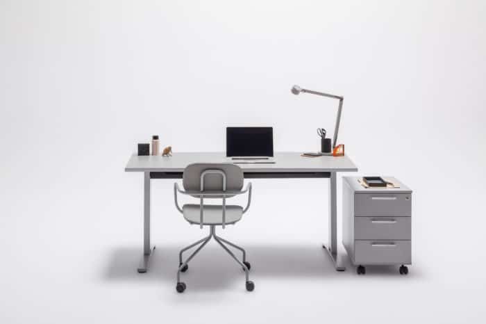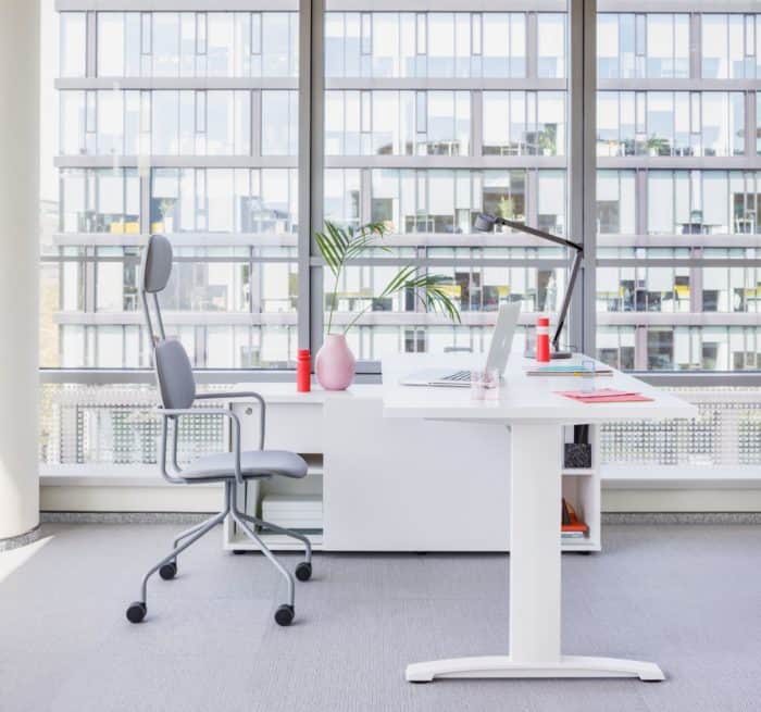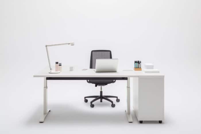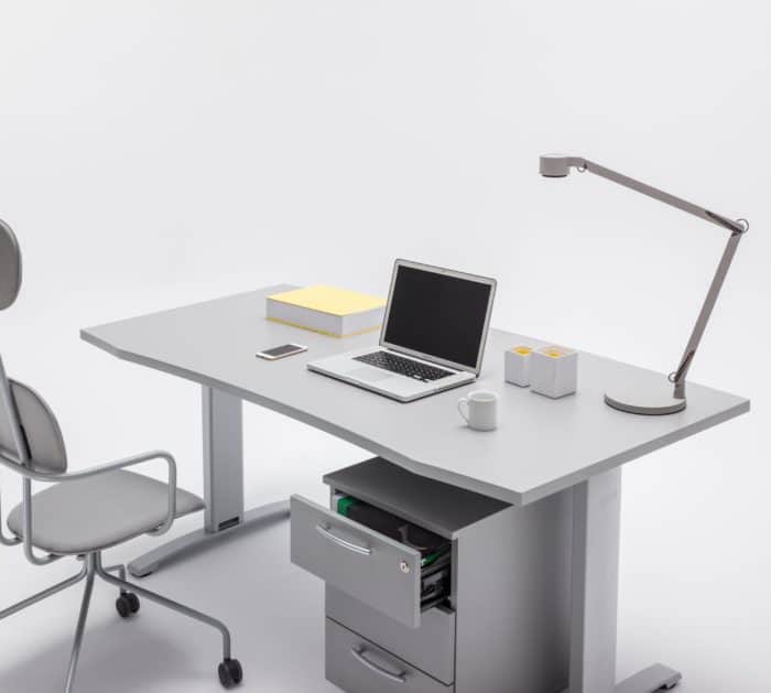 Biurko proste lub narożne, o standardowej wysokości lub to pozwalające na dopasowanie położenia blatu do wzrostu użytkownika – Ergonomic Master to elastyczna propozycja. Manualna regulacja modelu sit-stand zapewnia prawidłową postawę podczas wykonywania codziennych obowiązków, której efektem jest komfort pracownika. Opcja z szafką managerską to sposób na dodatkową przestrzeń roboczą, a charakterystyczna noga w kształcie litery T pełni nie tylko funkcję stelaża, ale także pionowego prowadzenia kabli. Wszystko to sprawia, że system ten to gwarancja ergonomicznego stanowiska pracy i bezpośrednio z niego wynikającej produktywności.