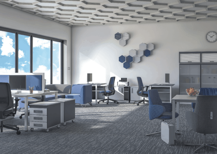 Biurka w tym systemie zbudowane są na skręcanym stelażu metalowym z nogami kwadratowymi o wymiarze 50 mm, występują jako biurka zwykłe i biurka nakładane na pomocnik. Zestawienie biurka, pomocnika, dostawki i tapicerowanych osłon pozwala na konfigurowanie wielu różnych układów stanowisk zespolonych lub całkowicie odrębnych.
