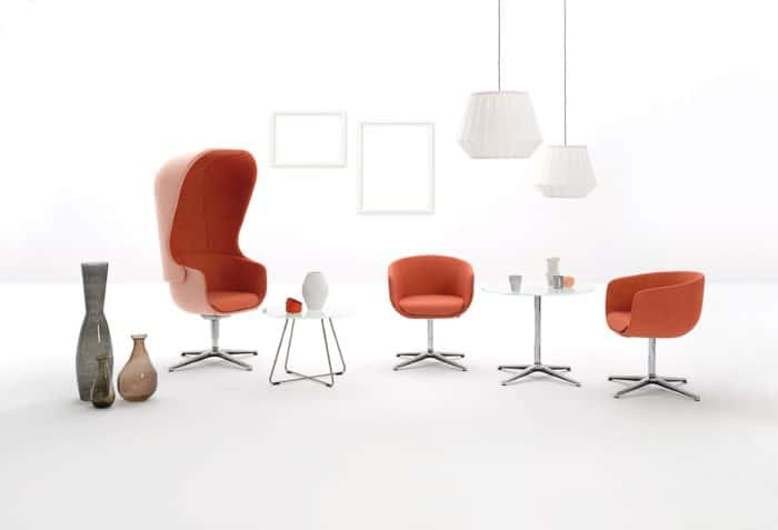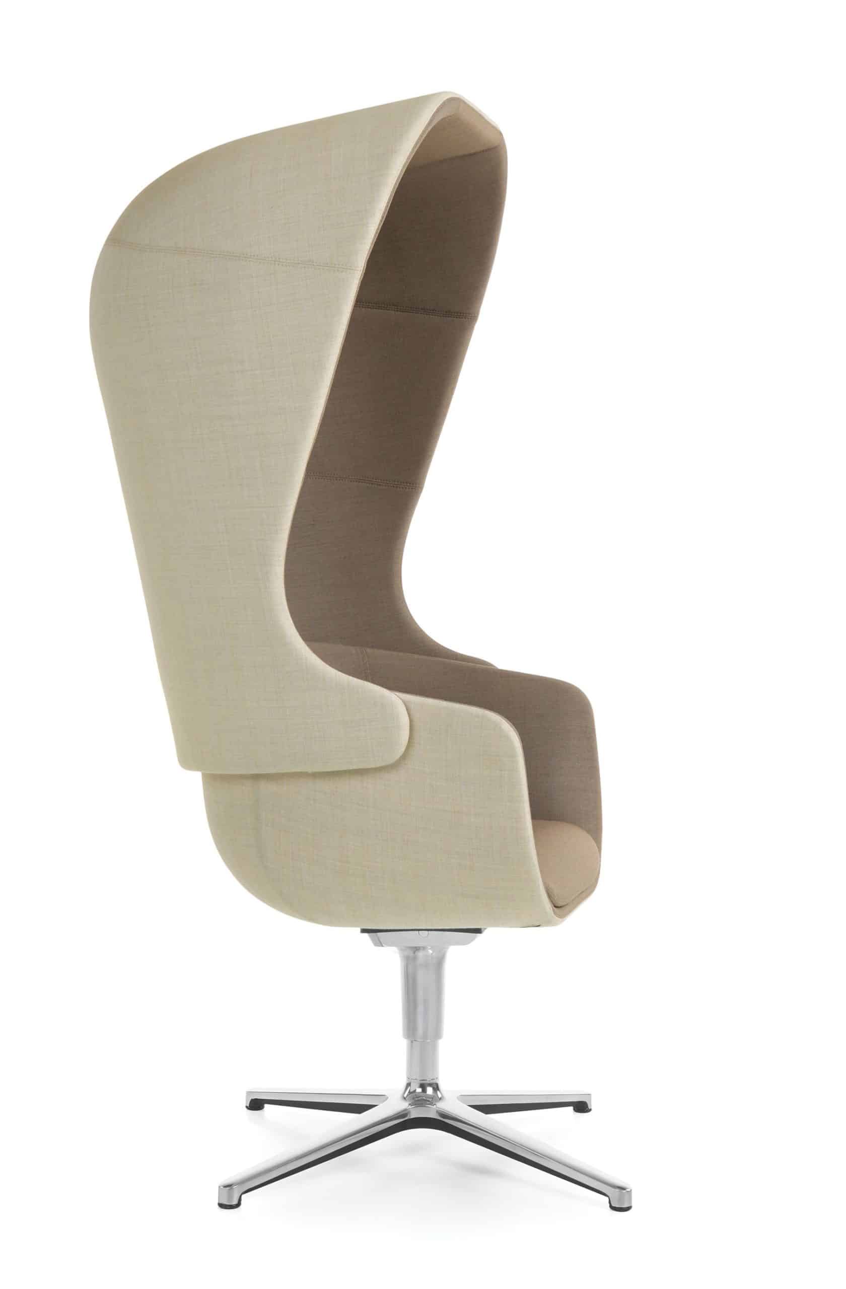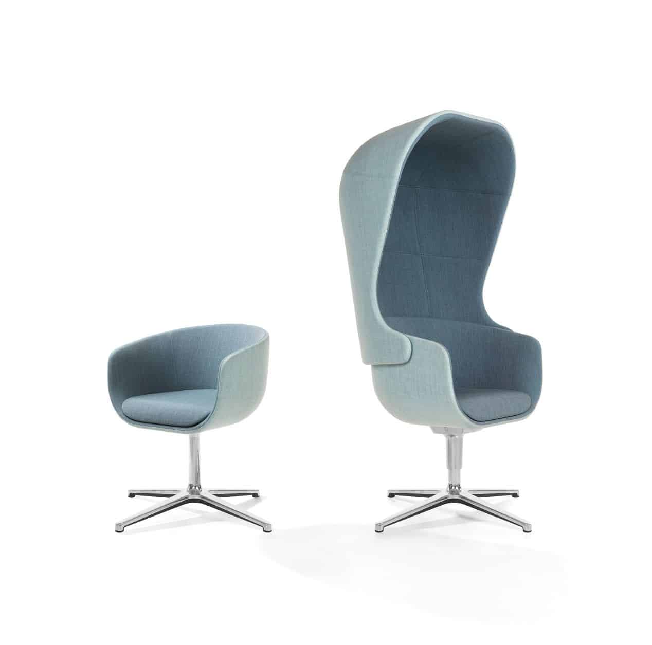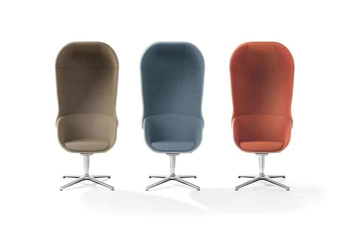 Fotele Nu to dobre rozwiązanie dla przestrzeni, które wymagają kompaktowych rozwiązań. To propozycja dla miejsc oficjalnych oraz przeznaczonych na relaks. Nu doda charakteru nie tylko przestrzeniom biurowym, ale również hotelowym foyer. W kolekcji znajdują się dwie wersje niskie: z małym i dużym kubełkiem oraz wersja wysoka z kapturem. Dzięki zastosowaniu takiego rozwiązania projektant chciał dać użytkownikowi możliwość spokojnej rozmowy lub chwili sam na sam z własnymi myślami, książką.